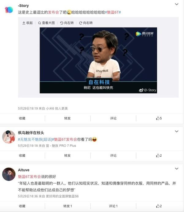 再来看产品,当说到魅蓝6T采用了MT6750处理器时,“王自在”直接摆出了“P10恒久远,一颗永流传”;而谈到魅蓝6T竟然搭载了背面指纹时,李楠更是直接以“内裤反穿,其实也没什么问题”做解释,这样丝毫不加掩饰的态度,放眼整个国产手机圈都难得一见。