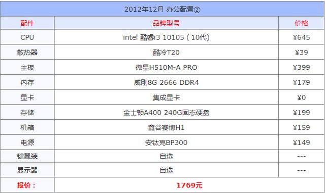 显卡采用AMD A6-8500P集显,运行内存4G是满足基本办公了,金士顿固态240G分出80G装Windows7或Windows10都是可以的,配上19-22寸之间的显示器,整套下来不到1500元预算低价格办公的可以来这套。