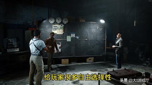 游戏当中还有自由选项,在非战斗的情况下,玩家会在一个工作室中待命,所接触的主角都会在当中做自己的事情,靠近后可以与他们对话,了解任务情报,一起解谜和战术分析。玩家在里面战斗并不是操控某个主角,而是完全自己创造的小角色,在战斗出任务时,可能会与梅森、伍兹等老角色合作。