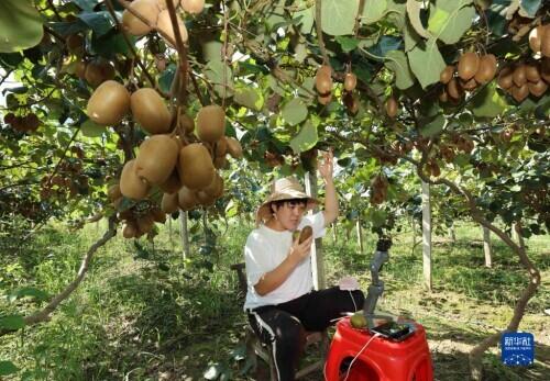 9月4日,在湖南省张家界市永定区后坪镇八家河村湘小伍家猕猴桃种植基地,果农通过网络直播销售猕猴桃。新华社发(吴勇兵 摄)