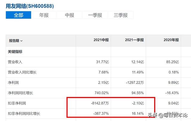 有意思的是,就在8月18日,用友网络公布正式发布2021年上半年财报,今年上半年,其营业收入31.77亿元,同比增长7.7%;归属于上市公司股东的净利润2.15亿元,同比增长740.0%。其中,用友网络极其看中的云服务(不含金融类云服务)收入15.06亿元,同比增长100.7%。