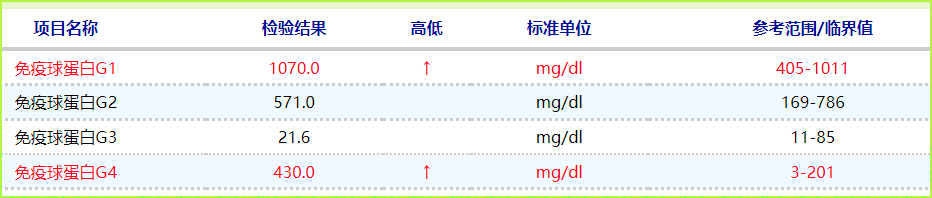 患者血液中IgG水平显示IgG4明显增高