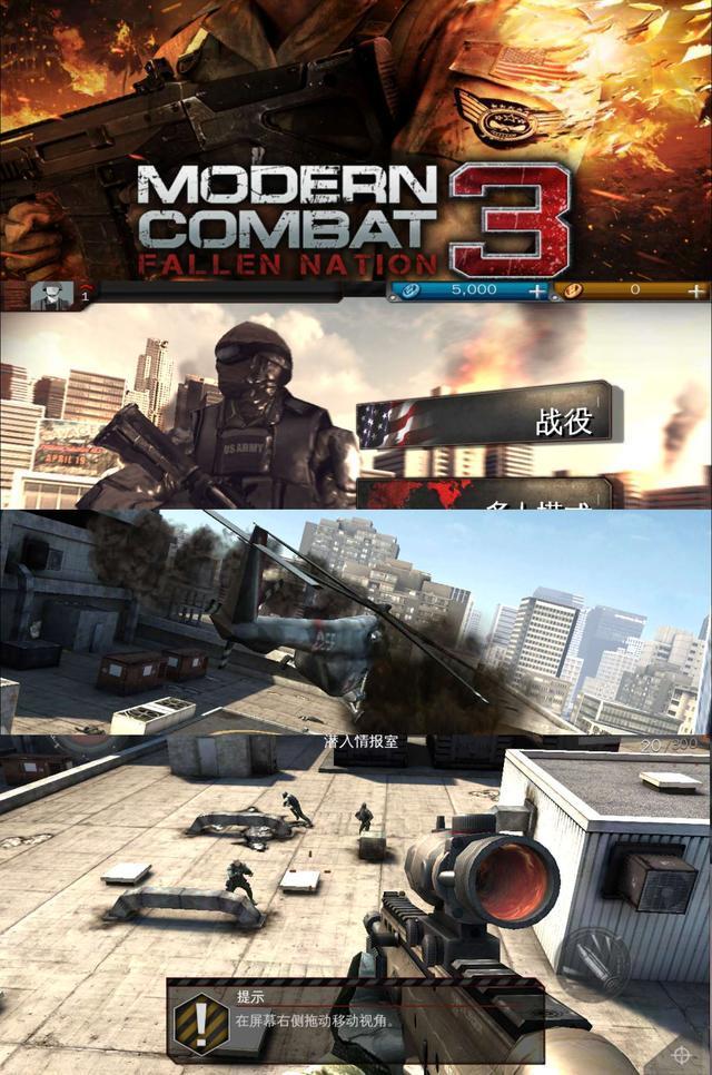 ▲ 现代战争3,据说使命召唤系列的作品。电脑上的使命召唤无论是画面还是剧情都是FPS作品的中点睛之作,不过手机版的现代战争3就有点相形见拙了。为了保证游戏的流畅度,画面和帧数相应地减低了不少。