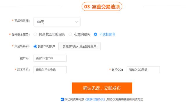 最后完善交易选项,点击确认无误,就可以发布啦!