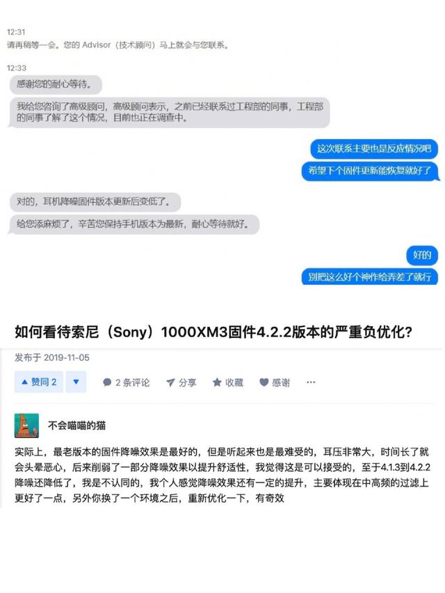 高强度降噪伴随的高强度耳压算法声音的不适,会产生一定的听觉闷胀,虽然大部分人都可以逐渐适应并且接受。可是少部分人难以接受高强度降噪开启后的耳压压迫感,这导致了苹果无奈地选择了一刀切做法直接削减了AirPods Pro的原始固件的降噪性能,类似的削弱降噪的固件过更新操作同样在索尼WF1000XM3都有体现。