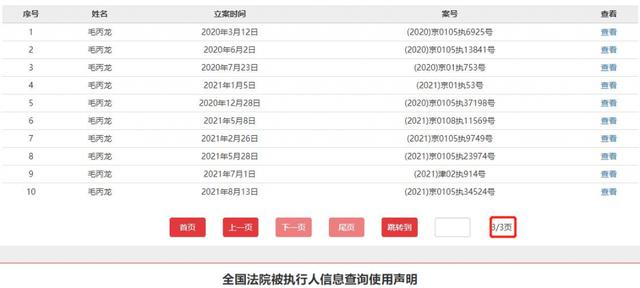 此外,毛丙龙及其公司还因为欠前员工9000多元不还,被北京海淀区法院强制执行((2021)京0108执2811号),被法院列入“老赖”名单。