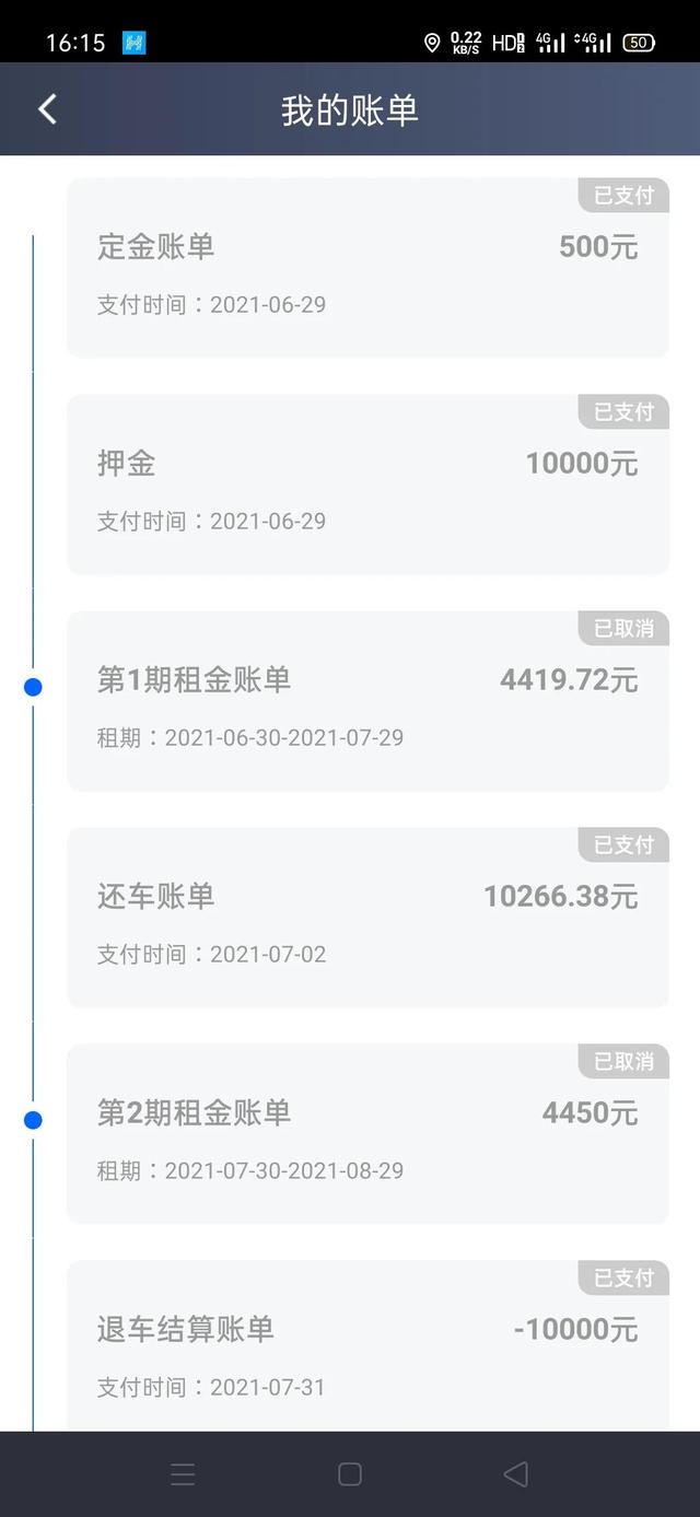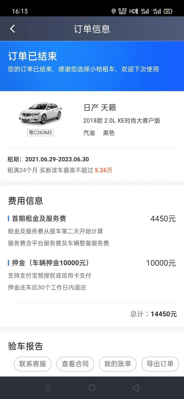 2021年6月29日我在北京车胜科技有限公司珠海分公司租了一台天籁,加盟跑滴滴快车,交了1万押金,每月租金4450元。 天籁本来是滴滴专车,被告知平台问题暂时不能升级专车,只能跑快车和特惠。