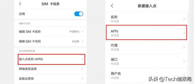 我们拿小米手机为例(其他安卓手机同样适用),首先将手机的设置界面打开,点击网络和连接找到双卡和移动网络并打开,然后选择一张开通流量的手机卡进入SIM卡信息,点击接入点名称(APN),在“APN”设置界面下方有个“+”号,点击新建APN。