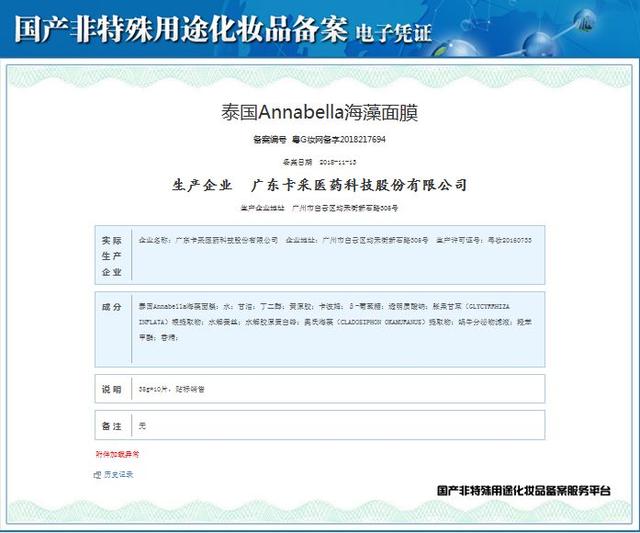 但是本人对这位空降的新晋泰国网红的血统深表怀疑,于是去国家食品药品监督管理局查了一下备案,发现生产企业现在是广东的一家企业。
