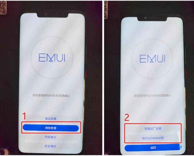 3、进入“清除数据”选项,,然后点击恢复出厂设置和格式化Cache分区即可。