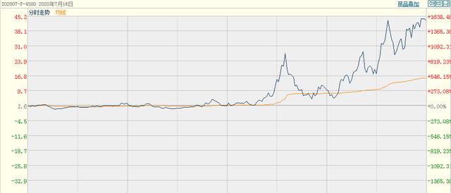 股指期权Put-4500合约,周四一天内价格从最低的1点(每手100元)上涨至45点(每手4500元),100元成本盈利近超4000元,收益率超过40倍