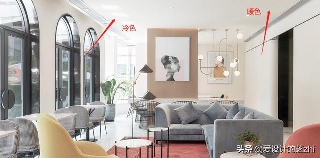为什么会出现上述情况呢,这是因为室内环境的亮度不仅受太阳光的影响,同时还受到天光的影响。实际上靠窗的位置天花上主要是受天光影响,但是天光可影响的范围较少,所以在空间较靠里的位置上就不受天光影响了。同时,天光是偏冷的,所以就会出现图中的这种情况。