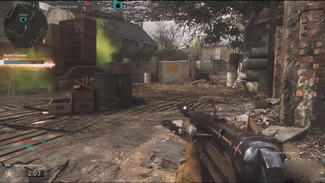 接着是摧毁弹药库,类似《战地1》的突袭模式。玩家需要在指定地点设置炸弹以摧毁弹药库,而敌方也能于炸弹爆炸前解除炸弹。