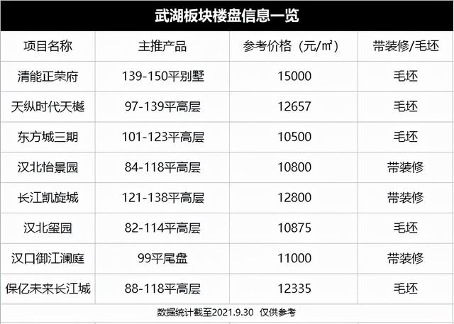 目前,武湖在售楼盘为天纵时代天樾、东方城三期、怡景园、长江凯旋城、清能正荣府、汉口御江澜庭等老盘,以及即将开盘的保亿未来长江城纯新盘。