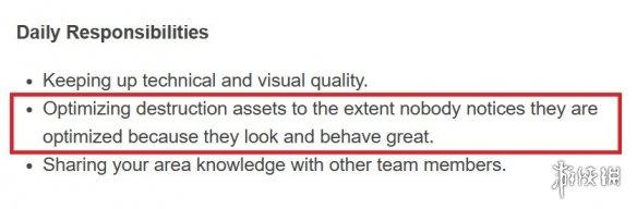 CDPR官网最近更新了招聘启事,并且很明显就是针对优化相关而招聘的员工,其中Destruction Technical Artist(销毁工程师)职位的描述中写道:“将游戏物品在销毁时,优化到无人注意的程度” 。还有类似的职位中都写到了优化相关,例如:将协助AI和引擎程序员的工作,将“优化、维护、设计游戏中的仿真物理系统”。