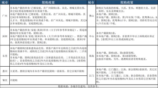 对于大湾区各城市外地的置业者来说,如果仅以限购政策划分,大湾区9个城市可以划分为3个梯队。