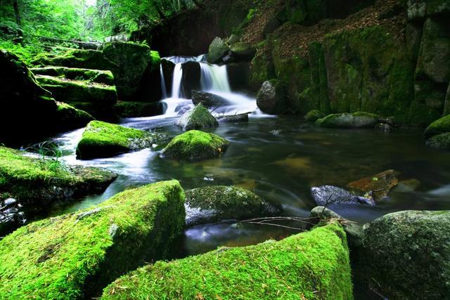 龙王潭是一处独特的林区美景。这里河水冲撞岩石发出巨大的响声,相当壮观。河中间凸凹形成5米多高的瀑布,恰如一条白色的缎带。