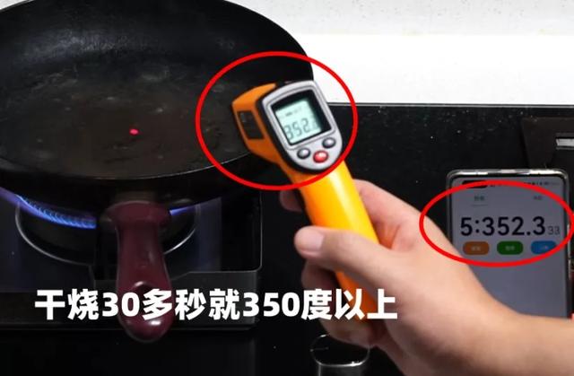 大火下,用不了几十秒,哪怕还有油也会烧到350度!