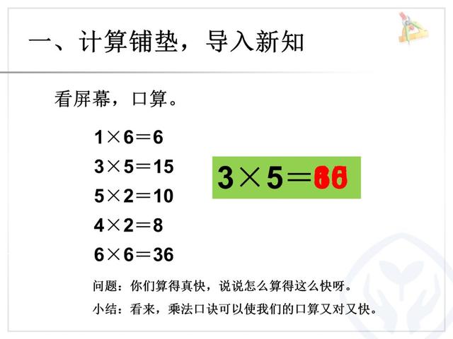 补充:几和几相乘,求积?用几×几. 如:2和4相乘用2×4=8