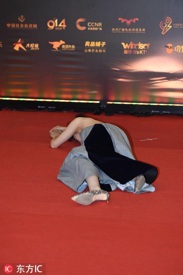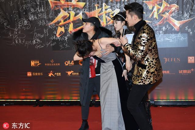 2017年12月18日,北京,1218直播节2017花椒之夜红毯活动举行。赵韩樱子在红毯上晕倒。(图片署名: 东方IC) "