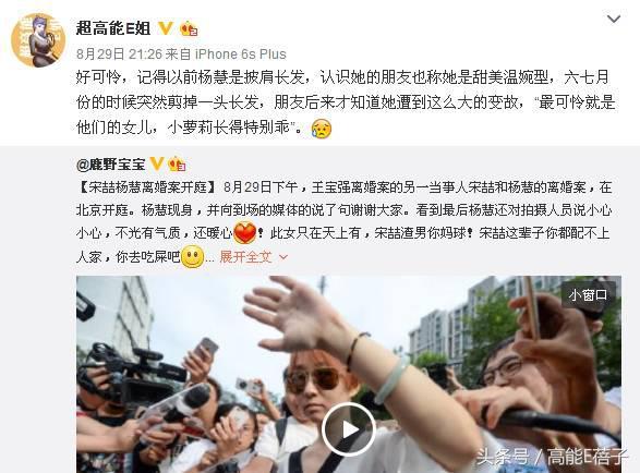 8月29日,杨慧与宋喆的离婚案正式开庭,一头干练短发示人。而知情人爆料以前的杨慧披肩长发,形象甜美温婉,和现在的干练完全不一样,可见变故的打击之大。