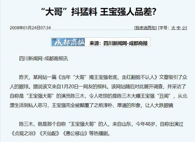 王宝强走红后,陈三木还和他闹出过“翻脸不认大哥”的风波。