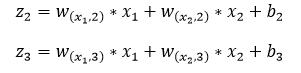即第二层的输入是第一层的输出乘以第二层的权重,再加上第二层的偏置。因此得到和的输入分别为: