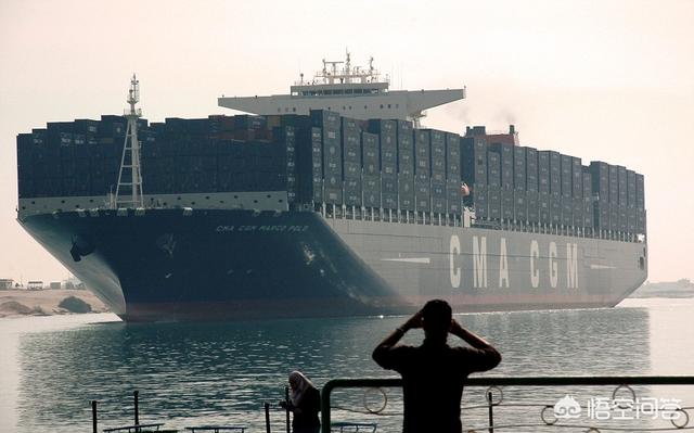 20.8万吨的马耳他籍货船马可波罗号正在通过苏伊士运河,跟超级货船相比,航空母舰只是个小萝莉。