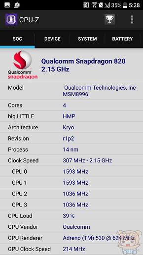 内部主要规格采用高通 Qualcomm Snapdragon 820 2.2GHz 四核心 64 位元处理器、Adreno 530 GPU 显示晶片、4GB RAM ,有 32GB/64GB 两种 ROM 储存空间版本提供给消费者选择。