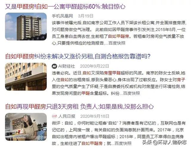 比如,几乎每年都有因为甲醛超标状告自如的租客。2017年,北京自如出租房内被租户爆出甲醛超标;2018年,阿里员工不幸得白血病身故,生前曾住自如甲醛房;2019年5月,江苏南京一名2岁半男孩也因白血病去世,生前住的也是自如房,同样被测出甲醛超标……