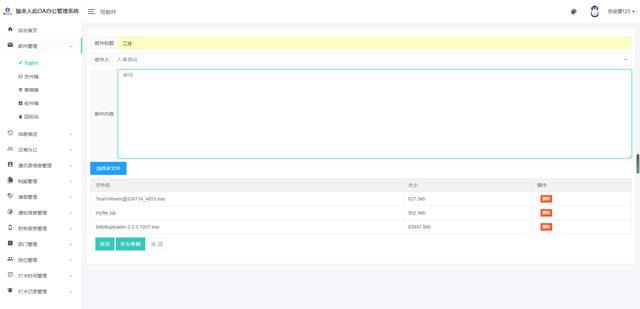 管理员:系统管理、请假管理、公告管理、档案资料管理、通讯录管理、日常办公管理、邮箱管理消息管理等。
