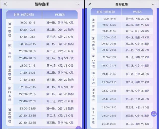 酷狗直播与全民K歌首次的跨服PK战只有3个多小时。而这次的三音争霸跨服PK战,则是将赛程设置为了2天。这样的设置,让比赛更有看点的同时,也让用户在观看体验上有了更好地满足。