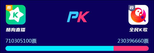 在今年6月底,酷狗直播就基于腾讯音乐娱乐集团(TME)对旗下产品调整,和“一体两翼”共同发展战略格局的确立,与同属TME阵营的全民K歌展开过一场“世纪对决”的跨服联动。在历时3个多小时的10场跨服PK中,酷狗直播获胜八局,总比分累计七亿,完胜对手。