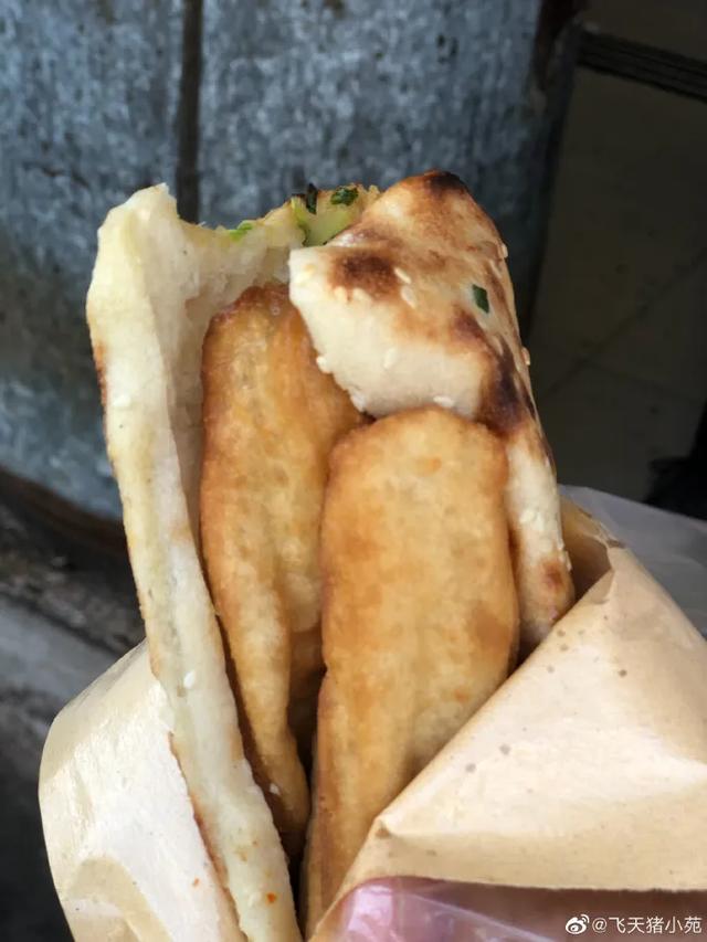 老衢州人喜欢夹着油条一起吃,葱香味十足的搁袋饼夹上一根刚出炉的酥脆油条,再淋上辣椒油,那滋味堪称一绝!
