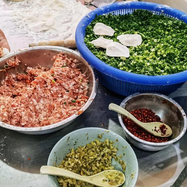 它的馅料一般是笋丁肉末、豆干、小葱,有辣与不辣之分。口感蓬松绵软,富有咬劲,还不粘牙,尤其是刚出锅的时候,还带有小麦的甜香味。