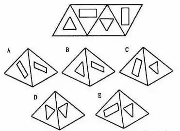 7. 左边给定的是纸盒的外表面,下列哪一项能由它折叠而成?
