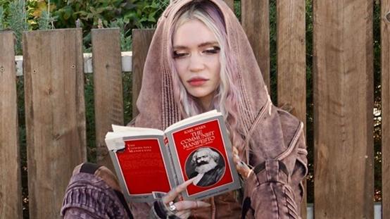 各家媒体很快爆出格里姆斯阅读马克思作品的照片。照片中的她依旧穿着奇装异服,发色也很特别,脚蹬一双黑色的靴子,又酷又时髦。