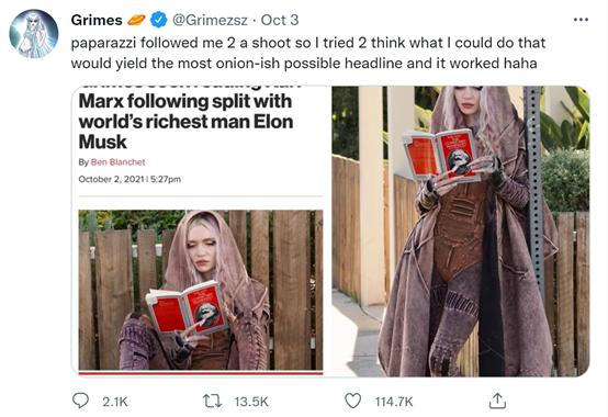 媒体猜测:格里姆斯很可能在使用谐音梗,马克思、马斯克,这两个名字太相似,没有马斯克,还有马克思。