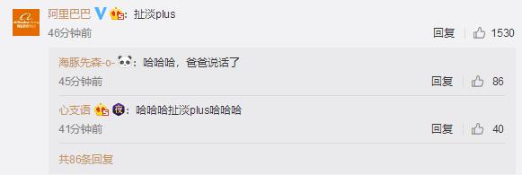 随后,虾米音乐跟上回应“扯淡”,阿里巴巴官微更是甩出了“扯淡plus”。