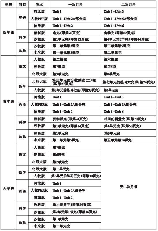 英语、品德与社会(3年级道德与法治)、科学:3~6年级均为60分钟。