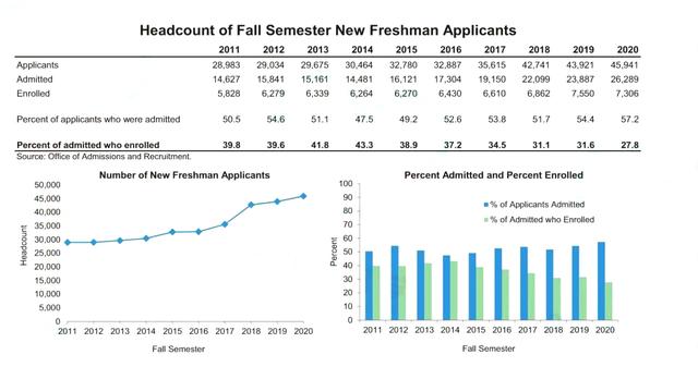 与2020年秋季相比,新生班级的非裔美国学生增加了7%,亚洲学生增加了22%,西班牙裔学生增加了34%,并且认同两个或更多种族的非西班牙裔学生增加了34%。