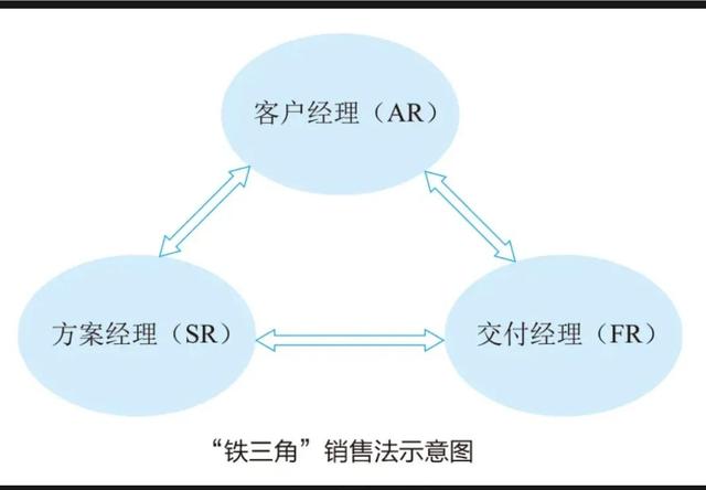 “铁三角”销售法简单来说,就是把销售力、交付力、产品力拧成一股绳,面对客户实现接口归一化,做到无论是产品介绍、销售,还是交付,都能实现统一标准,通过协力真正满足客户需求。