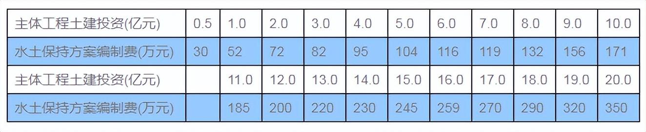 水土保持咨询服务取费可参考《关于开发建设项目水土保持咨询服务费用计列的指导意见》(保监〔2005〕22号),其中可行性研究阶段的开发建设项目水土保持方案编制费可参考下表标准计列。