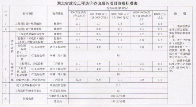 湖北省3000万元以下建设项目估算投资额分档收费标准