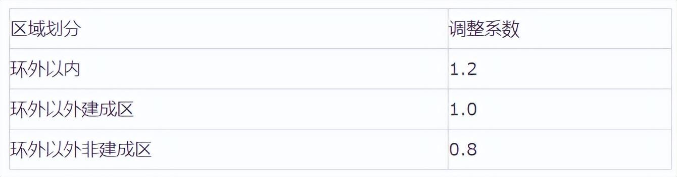 高程调整系数如下:
