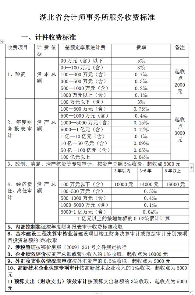 会计师事务所服务可参考地方收费标准,如湖北省地方标准——《湖北省物价局省财政厅关于印发<湖北省会计师事务所服务收费管理实施办法>的通知》(鄂价规〔2010〕265号),具体如下: