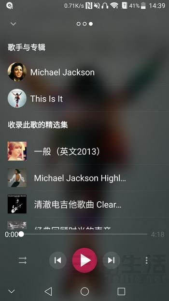 首先当然是在回放音质上的出众表现——笔者使用自购的Hi-Res版专辑测试,96KHz/24bit的高清音频,天机7MAX可以正常识别和播放。值得一提的是,其自带播放器的在线功能和本地播放结合得非常好,对于本地音频也能自动适配专辑封面、歌词,甚至还有相关歌曲的在线推荐。
