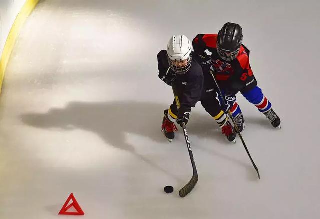 昨日,武汉国际广场滑冰场,孩子们在学习冰球。记者詹松 摄