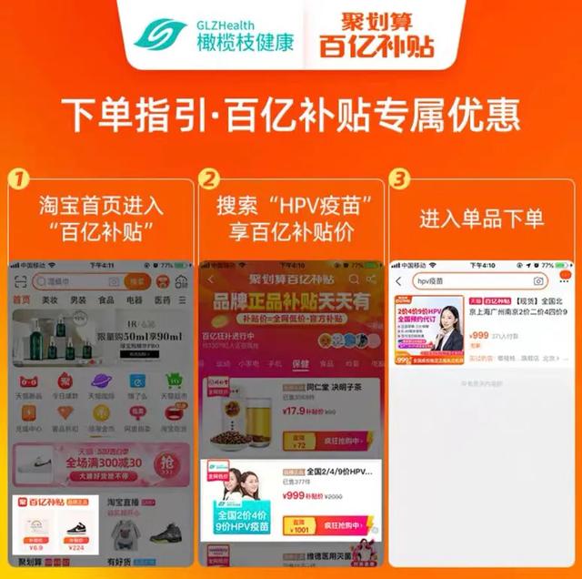 过去由于种种原因,很多女性需要前往香港、韩国等地,接种昂贵的进口HPV疫苗,加上机票、中介费等整个流程下来,至少上万元。国产HPV疫苗的上市,给了大家在家门口接种HPV疫苗的机会。而拥有聚划算百亿补贴的深度补贴加持,国民们更能在享受到健康保障的同时,加上一份超低价格的福利。