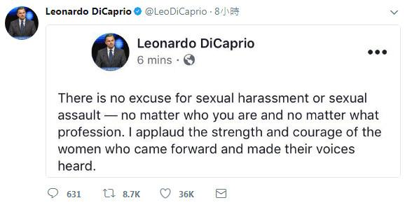 小李子在社交网络上发表了对此事的看法:“不管你是谁、你身居怎样的高位,都不能成为对他人进行性骚扰的理由。我为站出来揭露事件真相的女性们鼓掌,希望她们的声音能够被更多人听到。”除小李子外,艾玛·斯通、朱莉安·摩尔等明星也纷纷发声。